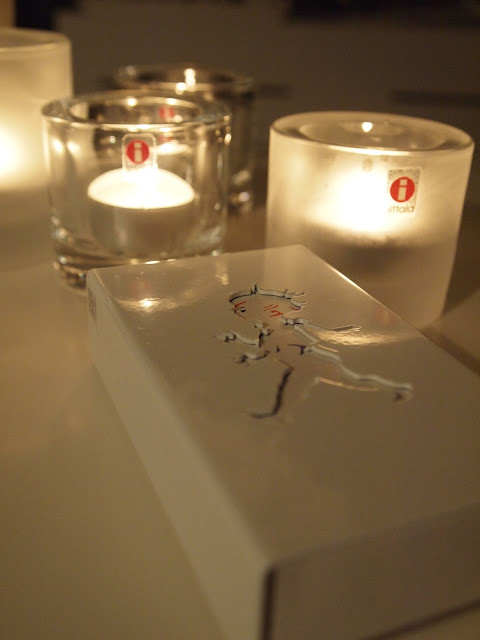Tändsticksasken och den frostade kivi-lyktan fick jag i julklapp av min söta make!